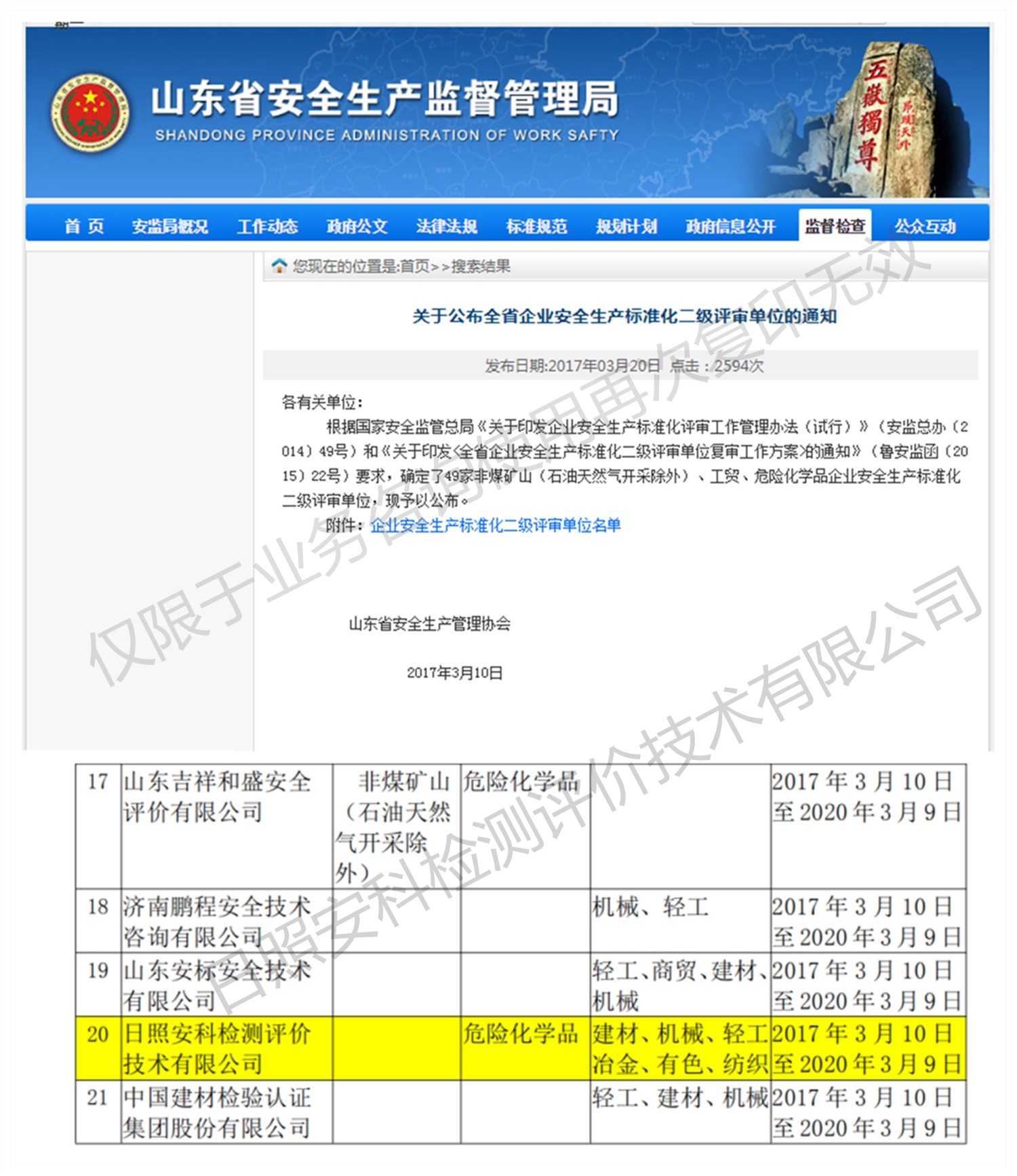 山東省企業(yè)安全生產(chǎn)標(biāo)準(zhǔn)化二級(jí)評(píng)審單位