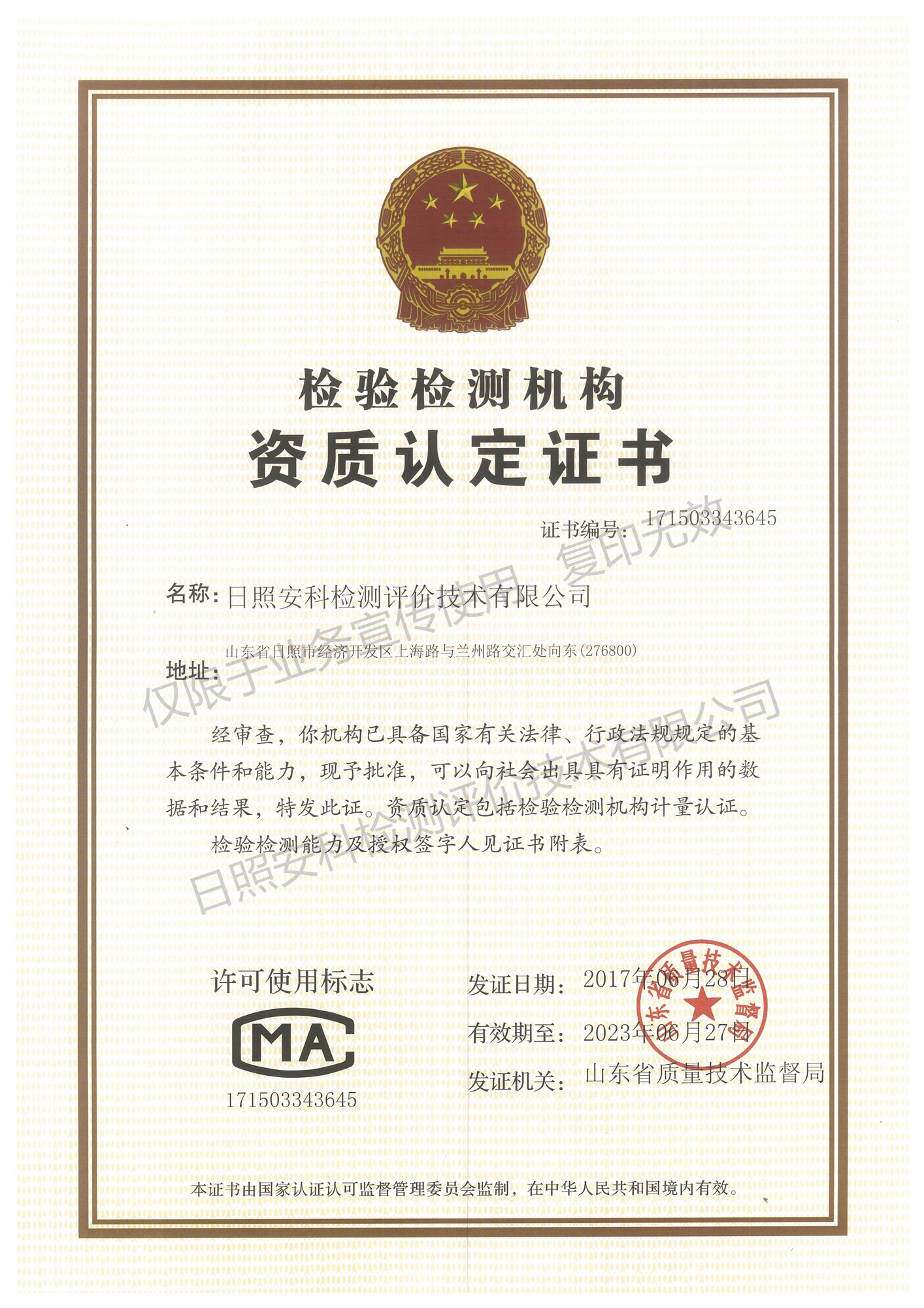 檢驗(yàn)檢測(cè)機(jī)構(gòu)資質(zhì)認(rèn)定證書